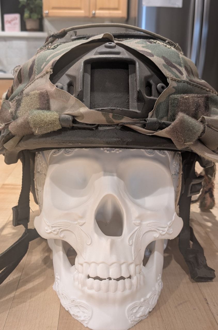 Printed in high quality stark white petg, this helmet stand will make a great addition to a bedroom, gaming room, man cave, or garage for storing anything from headphones to tactical helmets to motorcycle helmets. It also can be a great halloween or party decoration!